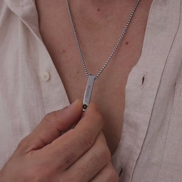 Introducing our Iron Bar Projection Necklace – a truly unique and personalized piece that allows you to carry your cherished memories with you. This necklace features a 3D bar pendant that can be personalized on all four sides, giving you ample space to engrave names, dates, or special messages. What makes this necklace truly exceptional is the magnifying-type bead, where you can have a photo of your choice printed, encapsulating your most treasured moments. Available in both gold and silver, this necklace is a symbol of personal connection and memory preservation.